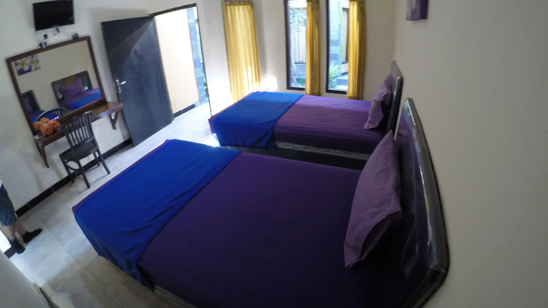 alles vonden we fijn: het vriendelijke personeel en onze nieuwe kamer. een leuke plek voor één overnachting. en het was maar 1 km van taman bhagawan. het bed was comfortabel.